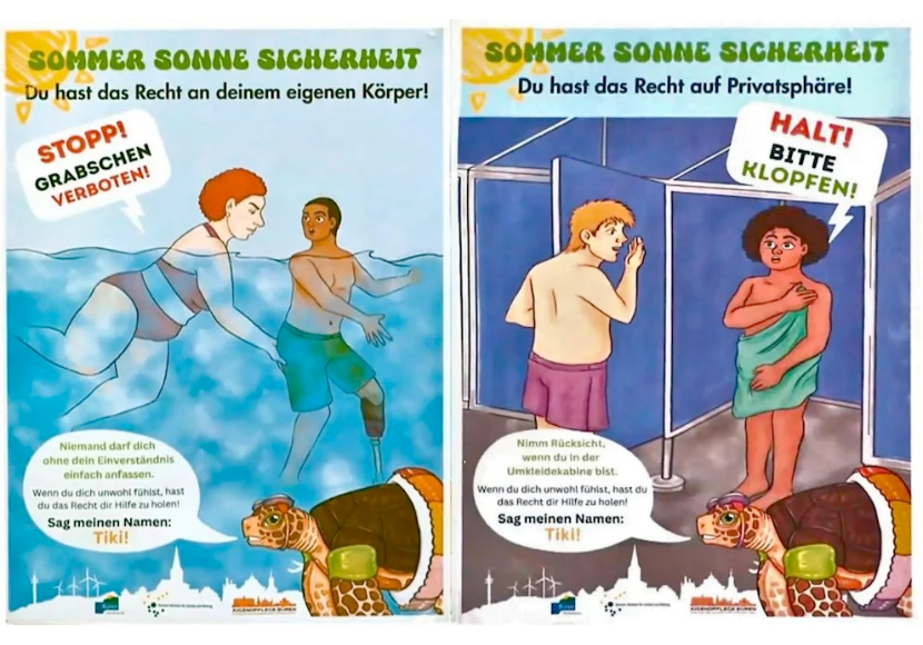 Eine rothaarige Frau tätschelt den Po eines schwarzen Jungen mit Holzbein, in der Umkleide baggert ein hellhäutiger Mann ein Mädchen nordafrikanischer Herkunft an – die Motive der neuen Freibad-Kampagnen in Köln und Büren lesen sich wie Satire, sind aber bitterer Ernst. Die Organisatoren wollen „zeigen, dass Täter im Blick sind“; erreicht haben sie vor allem kollektives Kopfschütteln – von Badegästen bis hin zur Deutschen Polizeigewerkschaft.