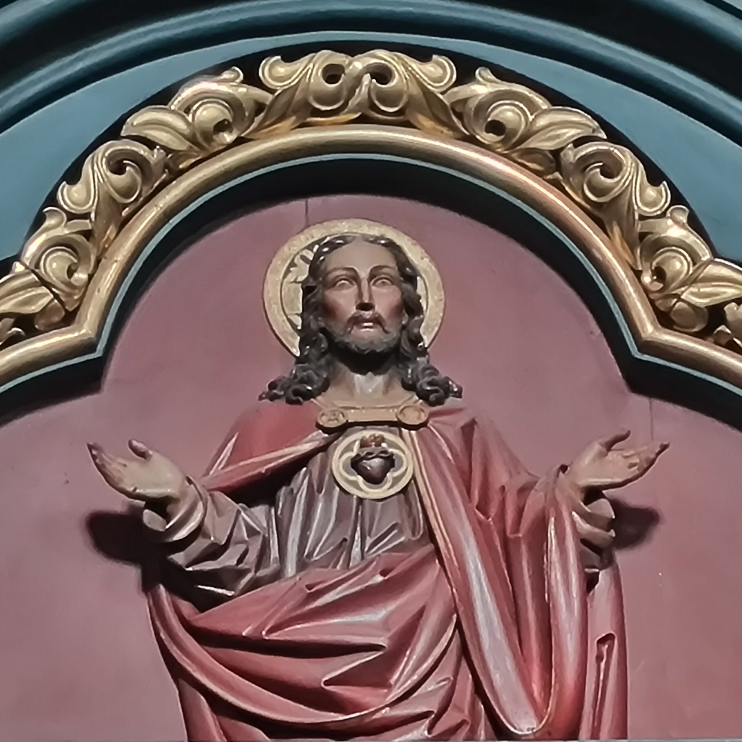 Qui siamo nella Chiesa Parrocchiale di Sarnthein, dedicata a Maria Assunta. Ci soffermiamo sugli altari laterali, in legno dorato e dipinto. Fra volute scolpite e dorate, entrambi ospitano un grande quadro al centro; ai lati, in altorielevo, raffigurazioni di Santi.  Ma uno dei due è quello che, in questa domenica di giugno, attira di più il nostro sguardo: a sovrastare l’intera composizione votiva, c’è l’immagine del Sacro Cuore di Gesù, Herz Jesu, a protezione di ogni cosa stia fra la terra e il cielo, fra i monti e le valli del Tirolo.