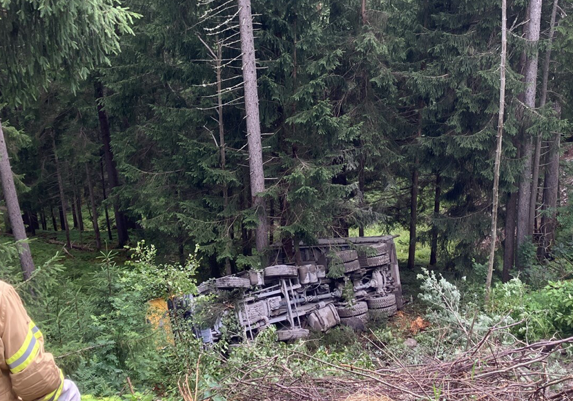 Eine 32-jährige Österreicherin war gegen 15 Uhr mit einem voll beladenen vier-achsigen Lkw unterwegs zur Deponie im Bereich Riefenwald, um rund 18 Tonnen Murenmaterial abzuladen. Auf der nassen und matschigen Forststraße kam sie in einer Linkskehre unterhalb der Deponie mit den rechten Reifen vom Weg ab, berichtet die Polizei Landeck. Der Lkw stürzte daraufhin etwa zehn Meter in eine Böschung und blieb erst durch den Aufprall an zwei Bäumen stehen.