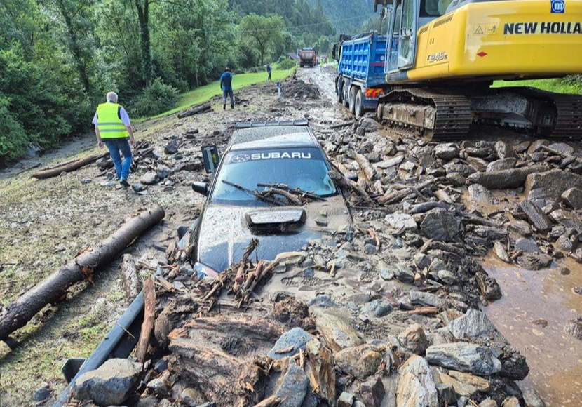 In Schnals hatten sich gleich zwei Muren gelöst: Eine größere im Altrateiserbach sowie eine kleinere am Bach „die Glor“. Besonders betroffen war eine Brücke auf der Landesstraße, deren Wiederöffnung nun oberste Priorität hat. Außerdem wurden an der Glor eine Forststraße und die Zufahrt zum Saxalbhof verschüttet. Vorarbeiter Martin Müller und sein Team sind mit schwerem Gerät im Einsatz, wie der zuständige Techniker Martin Eschgfäller berichtet.