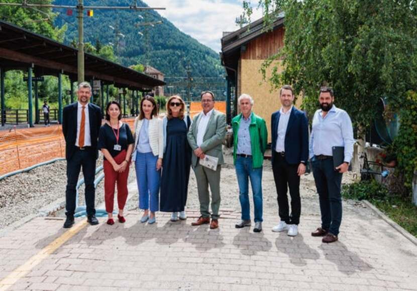 Mobilitätslandesrat Daniel Alfreider verschaffte sich gemeinsam mit Susanna Borelli, der Verantwortlichen für Bahnhofsinvestitionen in Norditalien beim Schienennetzbetreiber RFI, vor Ort einen Überblick. Auch Vertreter*innen der Gemeinden und Seniorenorganisationen nahmen am Lokalaugenschein teil.