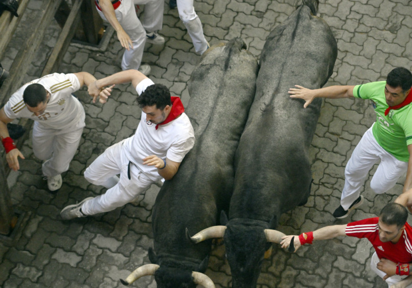 Viele der meist männlichen Läufer versuchen, vor oder neben den sechs Stieren zu rennen und diese möglichst auch an den Hörnern oder am Rücken anzugreifen. Auch nach dem Einlauf in die Arena gab es gefährliche Momente – einige Läufer konnten sich vor den Hörnern eines Stieres nur knapp über die Banden hinter die Absperrung retten.