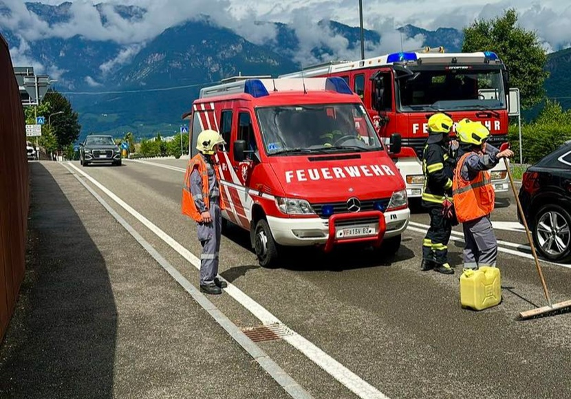 Am Freitag kam es an der Fleimstalerkreuzung zu einem schweren Verkehrsunfall: Ein Motorrad prallte mit einem Pkw zusammen. Der Motorradfahrer wurde dabei mittelschwer verletzt. Die Wehrmänner der Feuerwehr Auer leisteten Erste Hilfe, stabilisierten den Verletzten und sicherten die Unfallstelle ab.