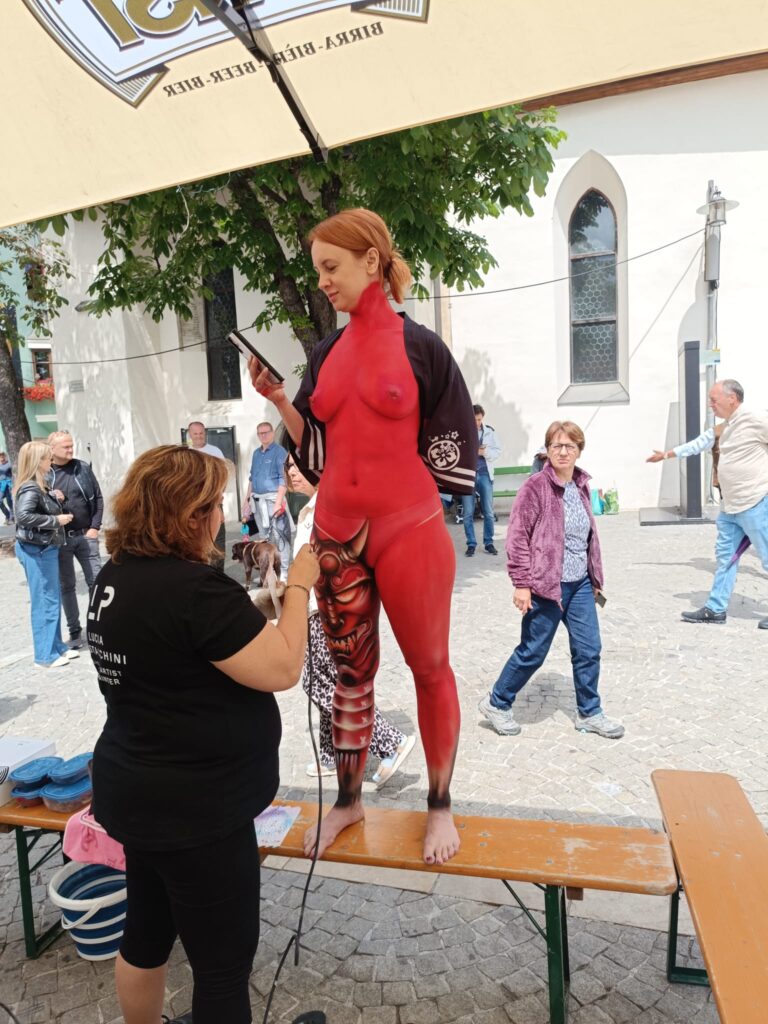 In der Kategorie Camouflage verschmolzen bemalte Körper auf beeindruckende Weise mit historischen Fassaden, Weinkellern und ikonischen Kulissen wie dem Zwölferturm oder dem Stadtplatz. Die Kunstwerke wirkten wie optische Täuschungen: Menschen wurden eins mit Mauern, Stein oder sogar Regalen. Rund 20 internationale Künstlerinnen und Künstler verwandelten ihre Modelle binnen drei Stunden in lebendige Kunstwerke. Manche reisten mit eigenen Modellen an, andere setzten auf spezialisierte Agenturen – unterstützt von zahlreichen freiwilligen Helfern aus der Region.