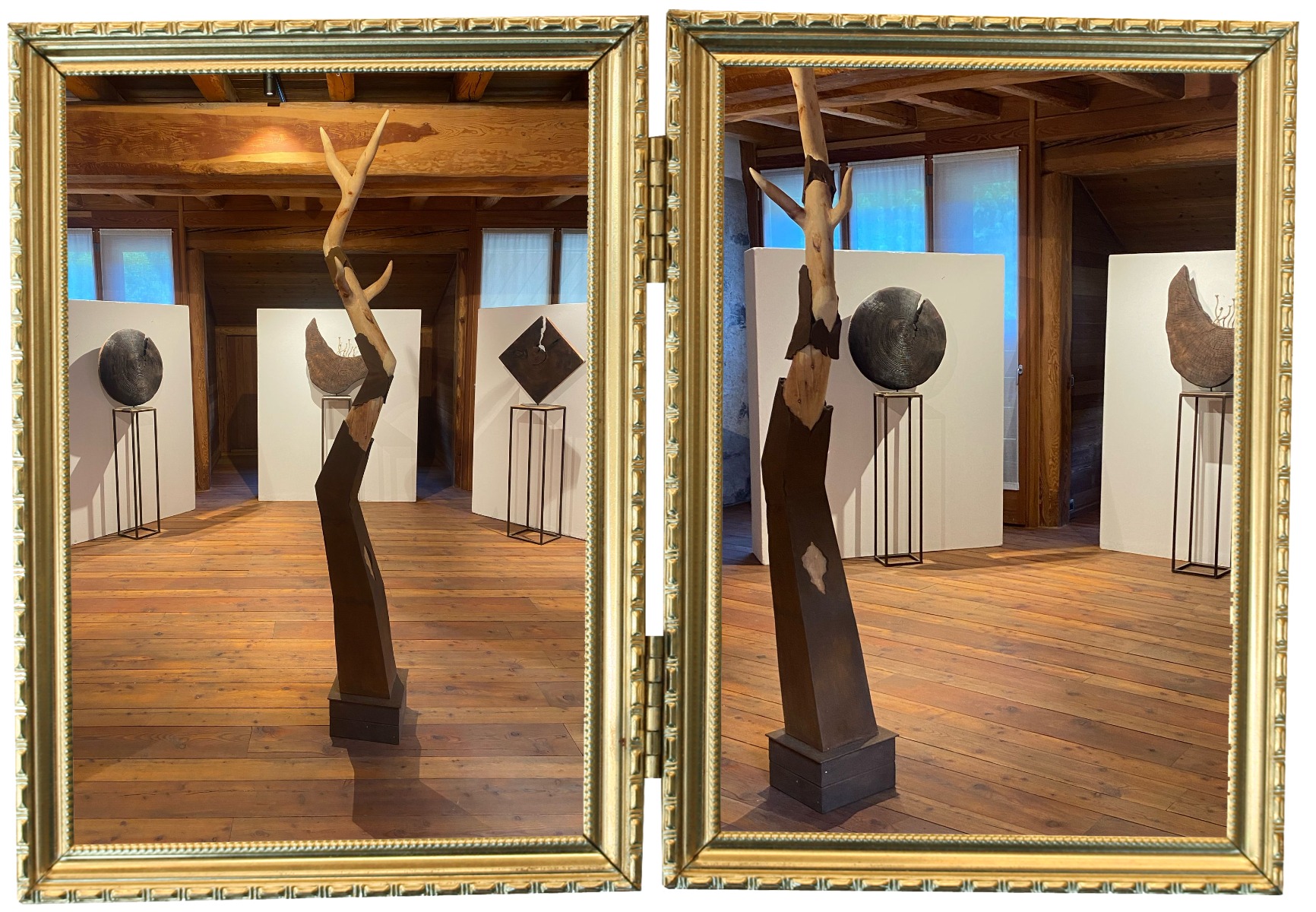 „Negli spazi della casa Cüs – continua Bonazza – saranno esposti tre gruppi tematici di sculture dell’artista di Spiazzo. L’ultima sua ricerca scultorea è volta al lavoro di un legno bruciato e sempre affine ai temi della natura e dei cambiamenti in atto».
