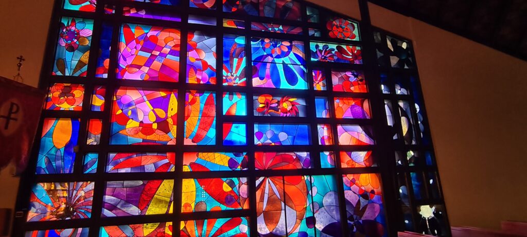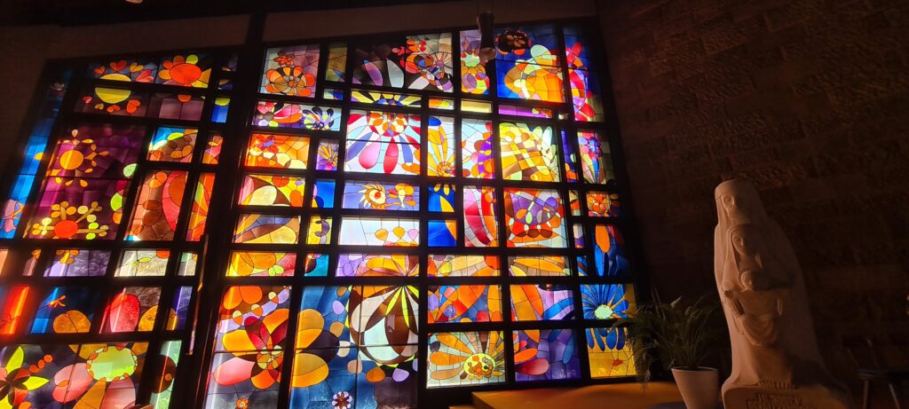 Realizzata negli Anni Settanta, su progetto dell’architetto Willi Gutweniger, riesce a donare, in chiave moderna, la stessa sacralità, la stessa proiezione verso l’infinito di una cattedrale gotica.  Attraverso le  immense vetrate  filtra una luce calda e colorata:  pare giungere dal più alto dei Cieli e riesce ad accendere, nel cuore del pellegrino e pure in quello del visitatore occasionale, la fiammella della fede e della speranza.