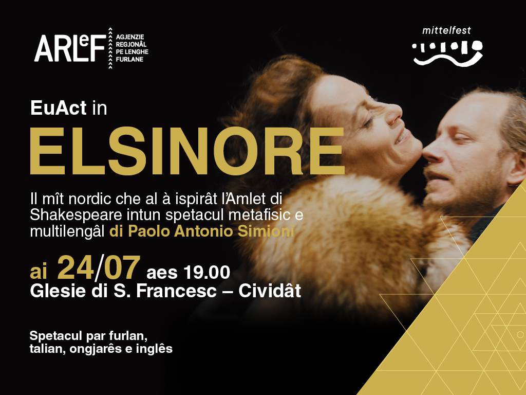 E sarà une prime in assolût chê in program joibe ai 24 di Lui, aes 19, insuazade inte inmagante glesie di S. Francesc, a Cividât, cuant che “Elsinore” al debutarà par Mittelfest 2025. Il spetacul, firmât di Paolo Antonio Simioni e produsût dal Centro Teatro dei Navigli in colaborazion cu la ARLeF e Mittelfest 2025, al puartarà al public dal festival une esperience teatrâl buine di passâ i confins linguistics.
