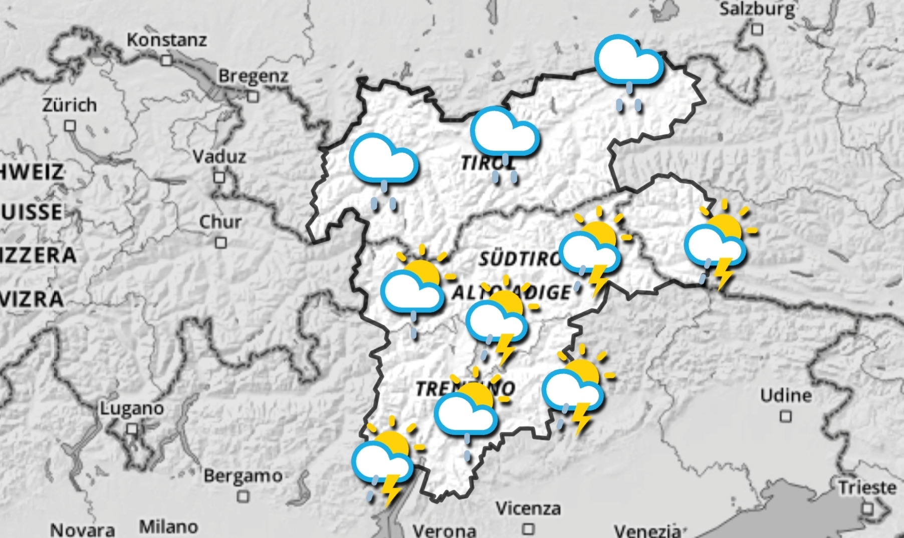 Temperature previste: Innsbruck 14°/ 20°; Bolzano 16° / 27°; Trento 16° /24