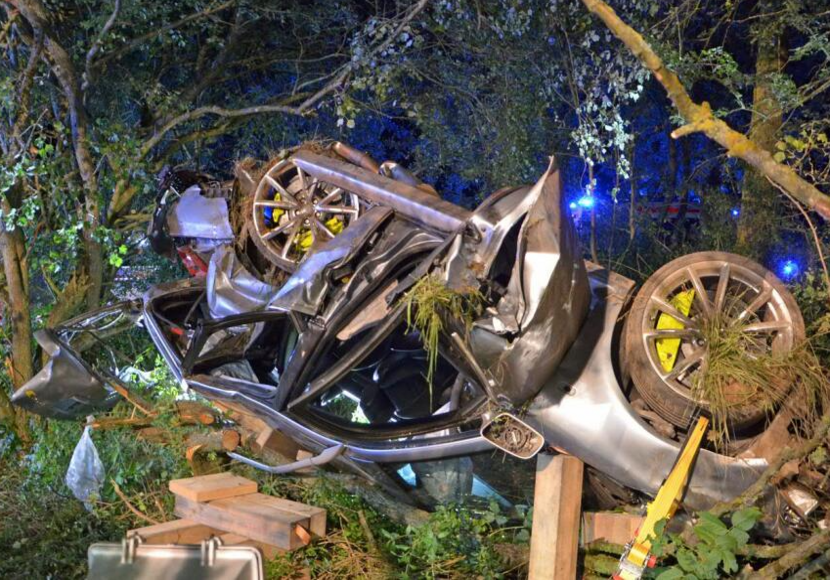 Das völlig demolierte Fahrzeug landete schließlich mit dem Dach nach unten in einer Baumgruppe. Die beiden Beifahrer wurden in dem Fahrzeug eingeklemmt und mussten von der Feuerwehr geborgen werden. Der Lenker konnte sich selbst aus dem Pkw befreien. Ein 38-Jähriger wurde schwer verletzt und mit dem Notarzthubschrauber ins Krankenhaus geflogen. Die beiden anderen Fahrzeuginsassen wurden mit dem Rettungsdienst in umliegende Kliniken gebracht.
