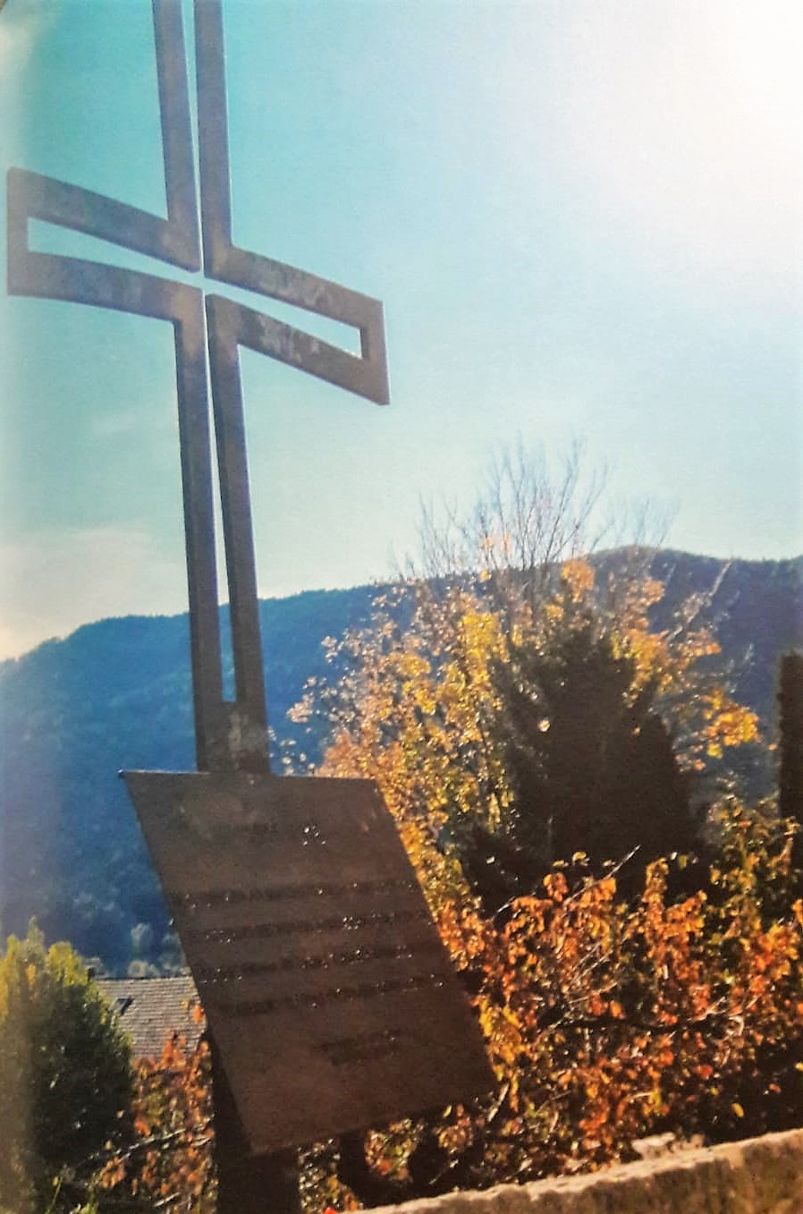 La croce di An der Front, una delle dieci che sono state collocate in luoghi simbolici dell’altipiano, si trova nel cuore del centro abitato di Folgaria, a pochi passi dalla chiesa parrocchiale.