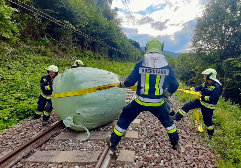 Gegen 18.30 Uhr ging bei der  die Freiwillige Feuerwehr Oberolang die Meldung ein, dass ein Heuballen auf den Gleisen gelandet ist. Der große Rundballen habe sich aus bisher unbekannter Ursache selbstständig gemacht und kam direkt auf den Schienen zum Liegen. Die Bahnlinie musste daraufhin für rund eine Stunde gesperrt werden. Es gab weder Personen- noch Sachschäden, berichtet die FF Oberolang.