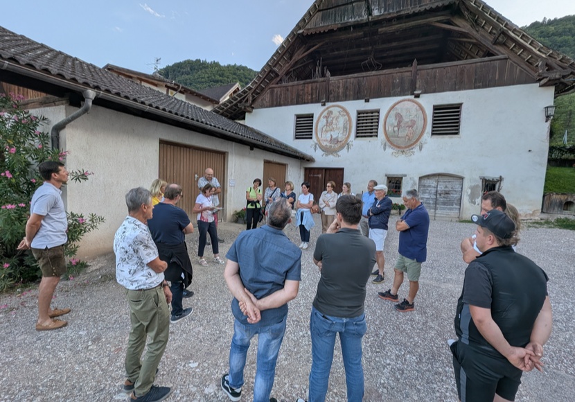 Weiter ging es zur Pfarrkirche St. Ulrich, wo Frieda Prantl die liebevollen Restaurierungen der letzten Jahre hervorhob. In unmittelbarer Nähe beeindruckte die Schwanburg als älteste Privatweinkellerei Südtirols – ein stolzes Relikt adliger Baukunst. Auch das markante Wirtschaftsgebäude der Familie Varesco in der Hiager-Zone bot Anlass für zahlreiche Geschichten.