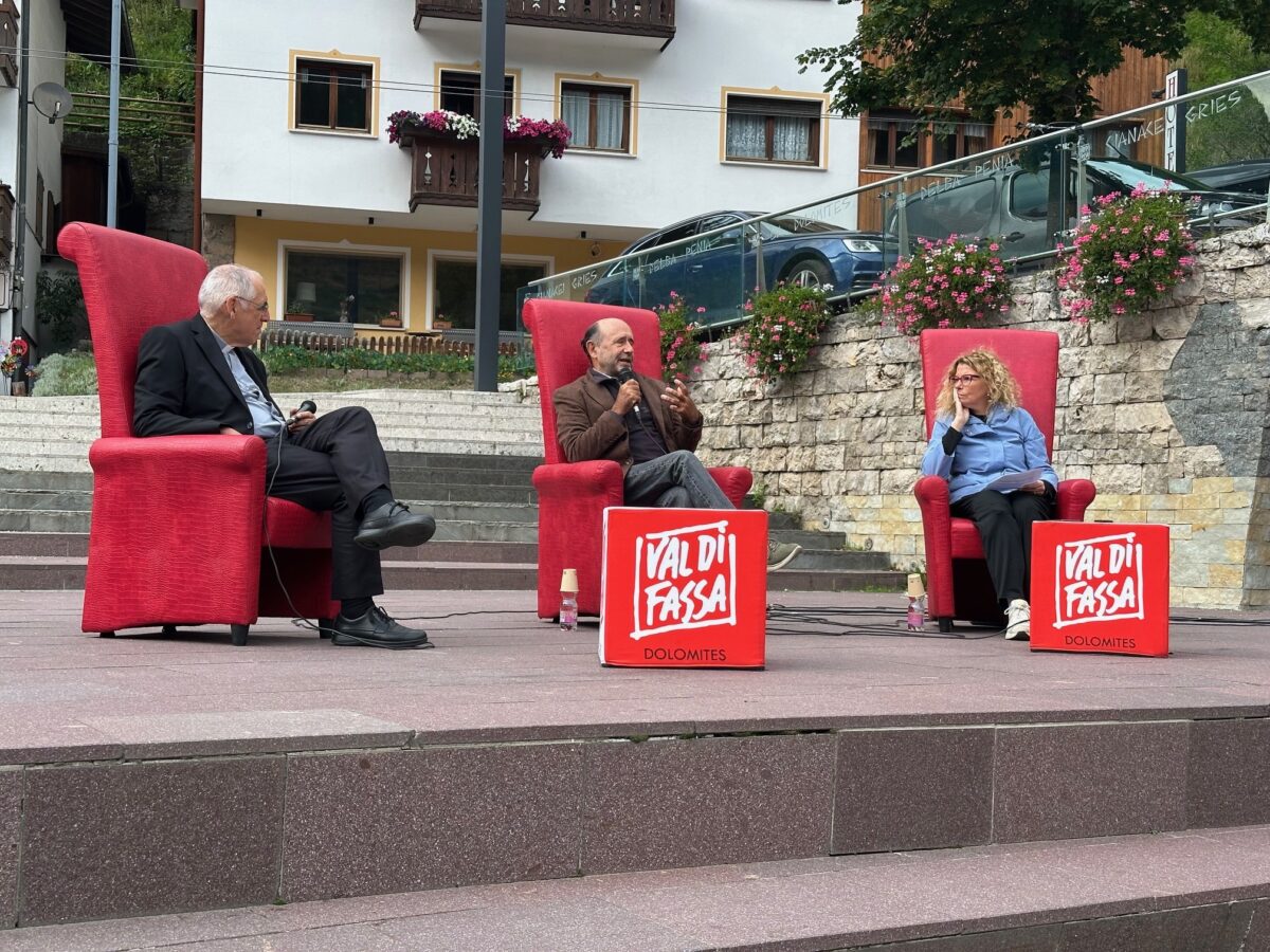 Al centro il rapporto tra l’uomo e l’ambiente montano, tra spiritualità e responsabilità, tra limiti e futuro. A partire dalla proposta lanciata da Camanni e descritta nell’omonimo libro (La montagna sacra, ed. Laterza) da lui firmato. “Nel concreto – spiega – è stata scelta una cima, il Monveso di Forzo, tra la Val Soana e la Val di Cogne – che è stata dichiarata ‘sacra’, impegnandosi a non salirla e non calpestarne più la vetta. Su quella montagna abbiamo deciso di non andare più: facciamo un passo indietro”, ha ribadito Camanni a Canazei, sottolineando il valore simbolico di una rinuncia come atto di consapevolezza, senza peraltro imporre alcuna sanzione. “L’uomo non può sempre dettare legge. Salvare l’ambiente significa salvare noi stessi. Di qualcosa di sacro abbiamo bisogno tutti”, si appassiona l’autore davanti all’attento pubblico del centro fassano.