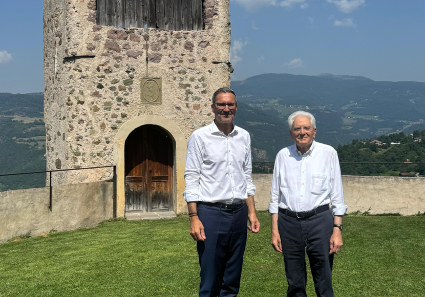 Bei strahlendem Wetter hat die Begegnung von Sergio Mattarella, dessen Tochter und Schwiegersohn mit Landeshauptmann Arno Kompatscher und dessen Gattin in Schloss Prösels in Völs am Schlern statt gefunden. Am Rande der gemeinsamen Schlossbesichtigung nutzte Italiens Staatsoberhaupt die Gelegenheit zu einem informellen Austausch mit dem Südtiroler Landeshauptmann. „Neben den aktuellen Entwicklungen auf staatlicher, europäischer und globaler Ebene, ging es dabei um eine Analyse der Südtiroler Gegebenheiten und der entsprechenden lokalen Strategien um den sozialen, wirtschaftlichen und ökologischen Herausforderungen der heutigen Zeit begegnen zu können. Selbstverständlich besprachen wir auch das Thema Südtirol-Autonomie mit besonderem Augenmerk auf die Inhalte des Verfassungsgesetzentwurfs zur Reform des Autonomiestatuts. Mattarella zeigte auch großes Interesse für die geplante Zusammenarbeit mit den Vereinten Nationen bezüglich des ‚Dokumentationszentrums für Minderheitenschutz‘, welches im neuen Bibliothekszentrum in Bozen Platz finden, wird“, erklärt Kompatscher.Â
