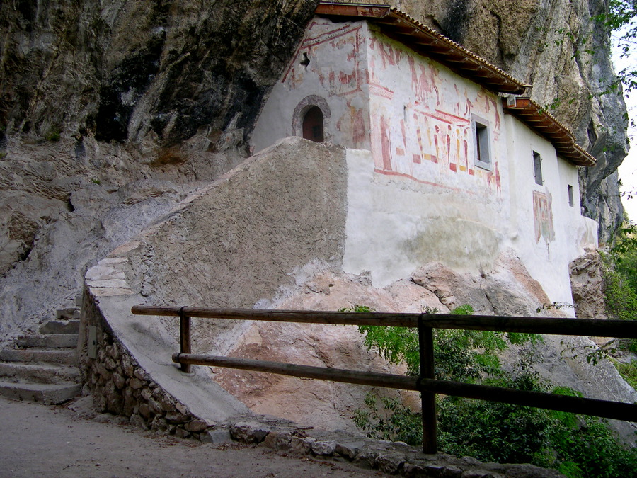 Magnifico esempio di arte sacra, impreziosito da incantevoli affreschi sia all’interno sia all’esterno, è di costruzione molto semplice, realizzato in una nicchia sotto una roccia strapiombante. Costituito da un’unica aula e da una stanza attigua, un tempo riservata agli eremiti, l’edificio è completato da un piccolo terrazzino e da una scala in pietra, in parte scavata direttamente nella roccia.