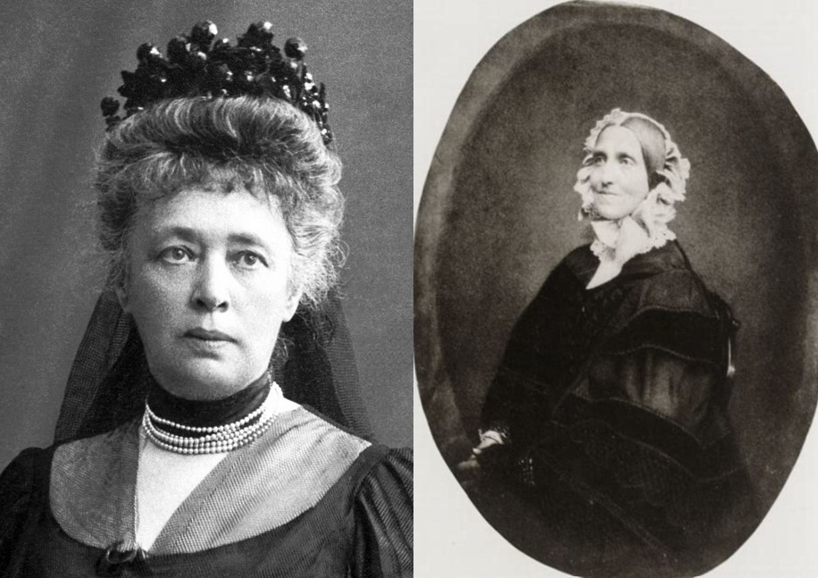Bertha von Suttner in anni giovanili (Foto Picryl) - e nel ritratto storico del 1906 (Foto Wikimedia Commons)