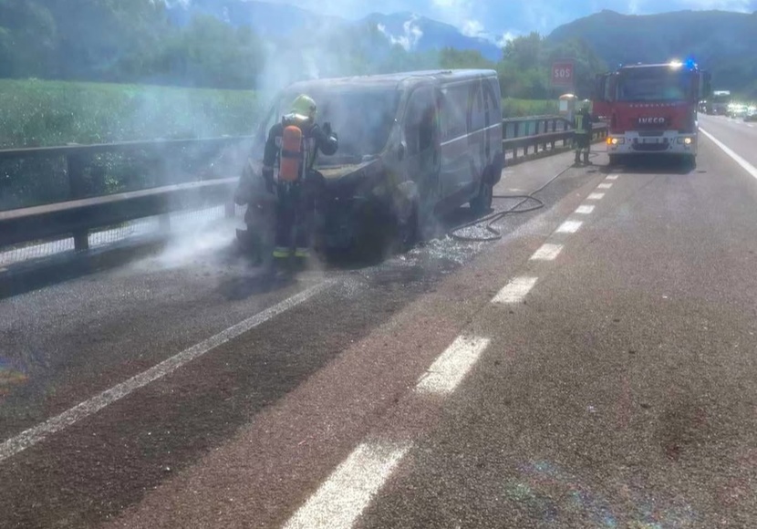 Lieferwagen auf A22 in Brand geraten