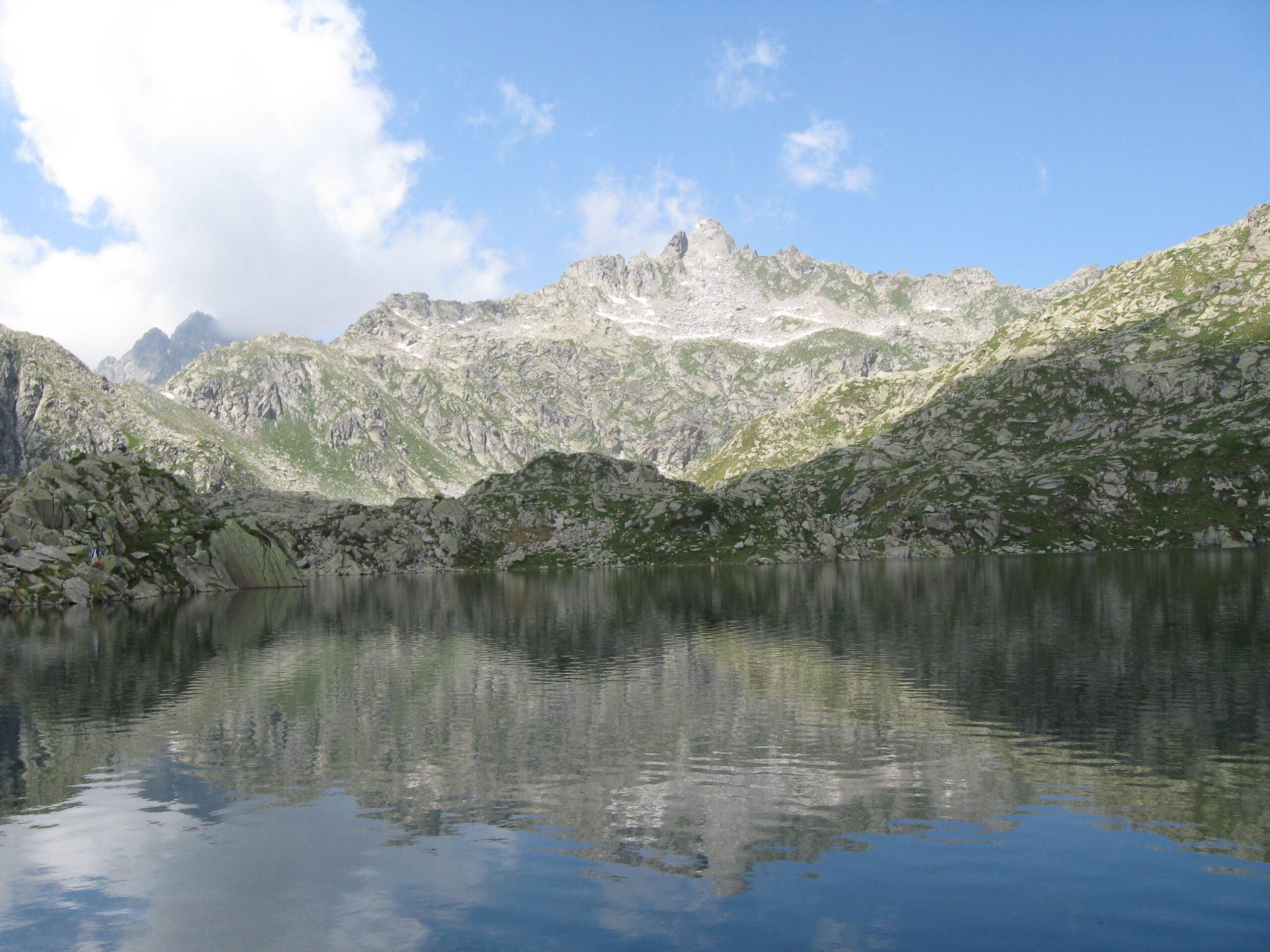 Oggi siamo saliti al Lago Serodoli, lo specchio d’acqua immerso nel paesaggio quasi lunare dei blocchi granitici adamellini, a 2370 metri di quota.