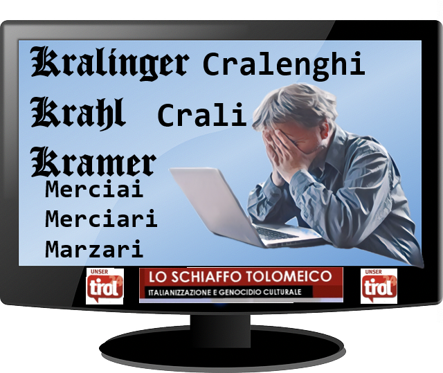 Tolomei si ostinava a credere che molti cognomi sudtirolesi fossero stati a loro volta modificati dall’italiano. Beh, come si può constatare era una sua patologia, grave e arrogante perché tutti i cognomi sinora citati e anche quelli che seguiranno, sono di ovvia origine tedesca. Era davvero un essere spregevole. (continua)
