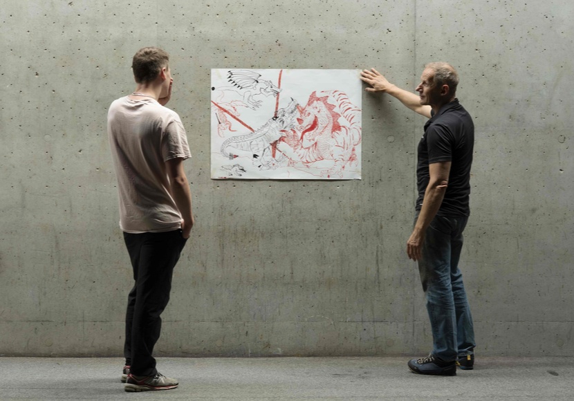 Die Ausstellung beleuchtet gesellschaftliche Umbrüche und setzt die Vater-Sohn-Beziehung als Metapher für den Austausch zwischen den Generationen ein. Die Werke der beiden Künstler sind räumlich getrennt, treffen aber im Zentrum aufeinander – nicht als Vergleich, sondern als offenes Gespräch.