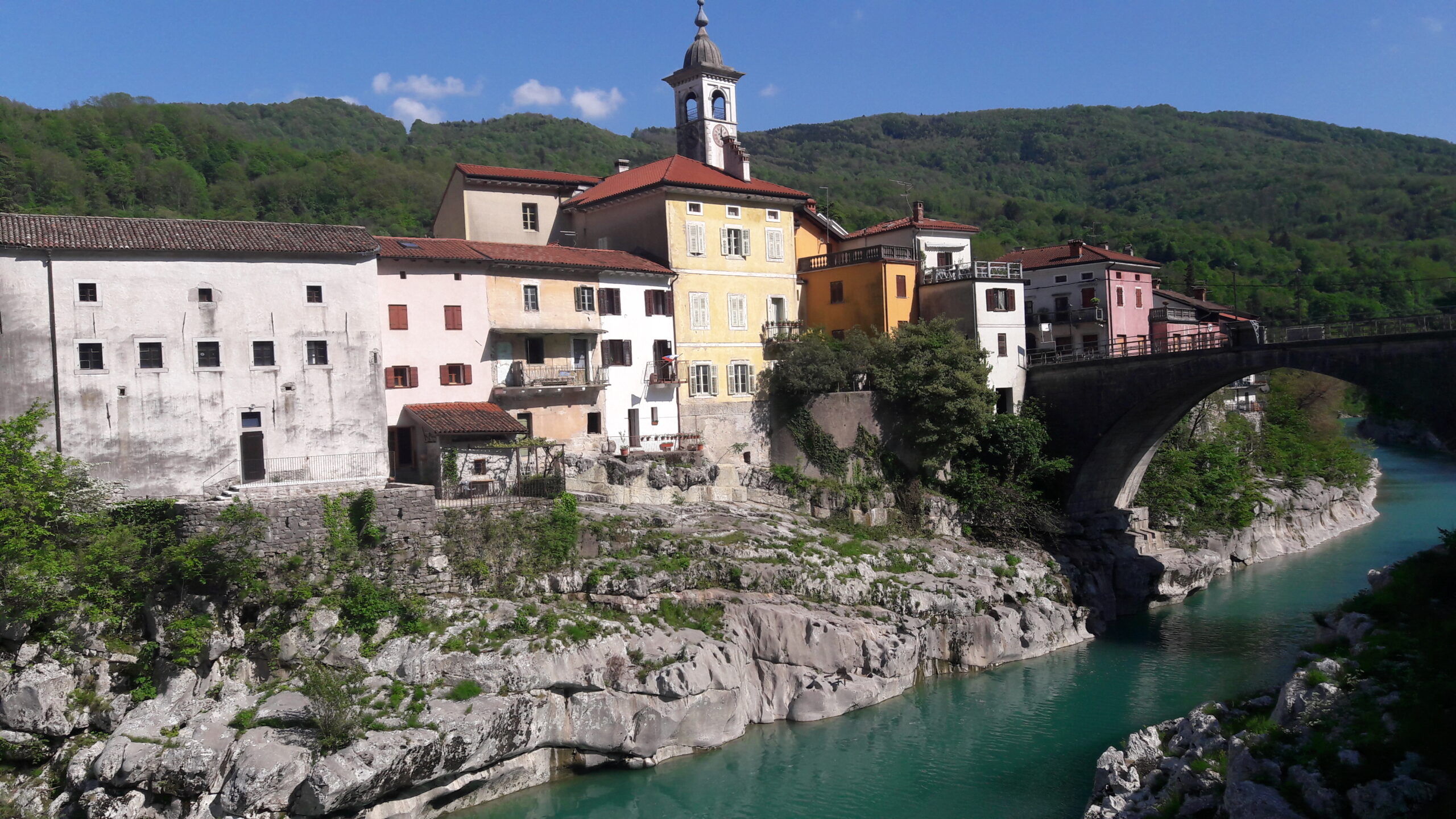 Oggi percorriamo le rive dell’Isonzo, fino ad arrivare a Santa Lucia / Most na Soči – a pochi chilometri da Kobardid / Caporetto.