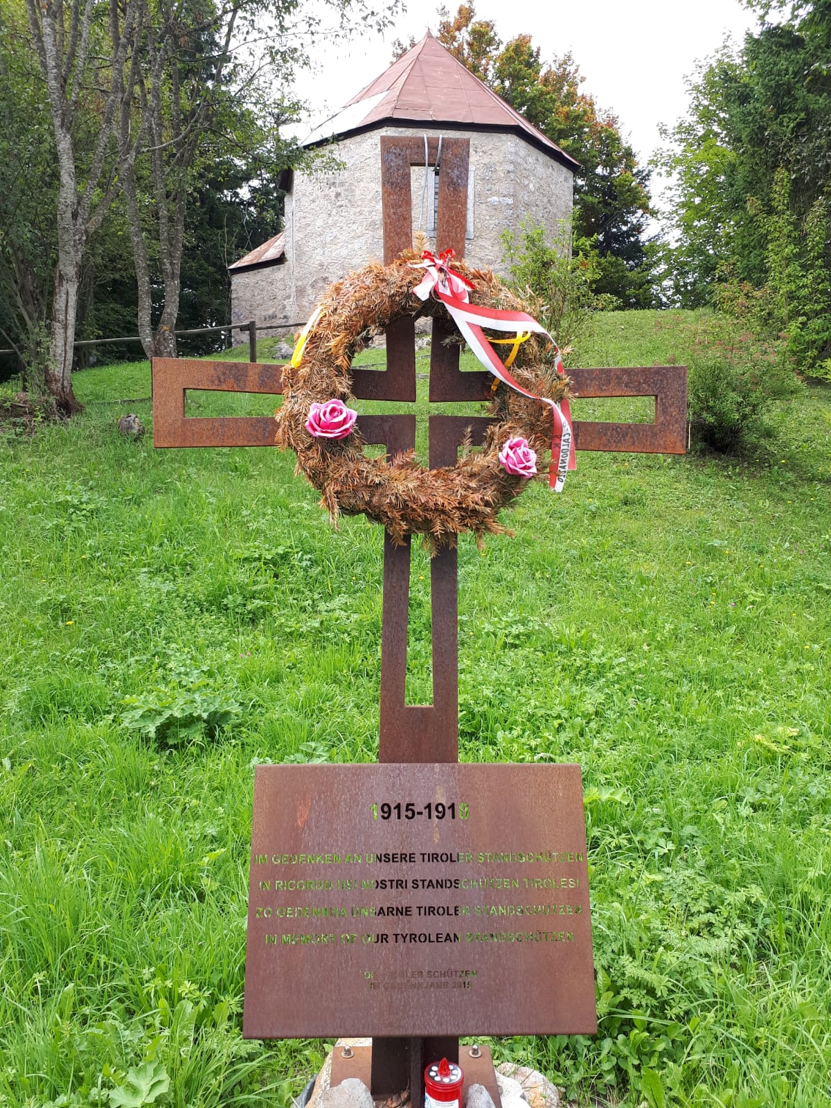 Percorso:  Dall’ex albergo Monterovere (a quota 1250 metri, raggiungibile sia da Caldonazzo che da Lavarone in una decina di chilometri), in pochi passi si raggiungono la Cappella di San Rocco e la Croce in ricordo degli Standschützen.