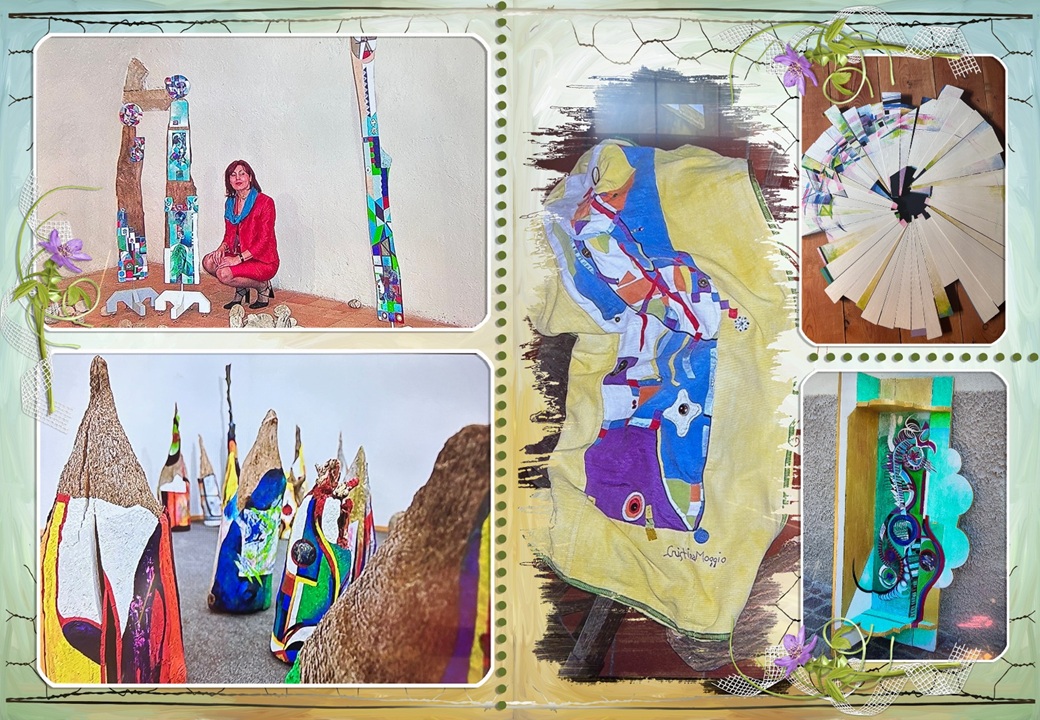 L’arte di Cristina Moggio si distingue per l’audacia con cui trasforma il materiale di recupero in opere di grande intensità visiva. Oggetti dimenticati o destinati a nuova vita trovano sulla sua tela – o meglio, nelle sue composizioni e installazioni – una seconda esistenza, rigenerati da colori potenti e vibranti. Ogni creazione è una sintesi di immaginazione e sensibilità : il gesto creativo non si limita a dare forma, ma ridona senso e dignità a ciò che era marginale. La sua capacità di fondere materia e colore rivela un linguaggio autentico, capace di unire forza espressiva e delicatezza poetica, offrendo allo spettatore un’esperienza che va oltre l’estetica e diventa riflessione sulla bellezza nascosta nelle cose semplici. L’opera pittorica di questa artista si radica in una ricerca coerente sul valore della materia e sulla sua possibilità di rigenerazione estetica. L’utilizzo di materiali di recupero non si configura come mero espediente tecnico, bensì come scelta linguistica consapevole, capace di ridefinire il concetto stesso di supporto e di superficie pittorica. Su tali basi si innesta un uso del colore di forte intensità espressiva: tonalità accese, stratificate e vibranti, che instaurano un dialogo dinamico con le asperità della materia. La creatività dell’artista non risiede soltanto nella composizione, ma soprattutto nella capacità di attribuire nuove identità a elementi residuali, rivelandone inattese potenzialità formali e poetiche. Ne risulta un corpus di opere che trascende la dimensione decorativa per assumere un valore critico, interrogando lo spettatore sul rapporto tra bellezza, trasformazione e sostenibilità .