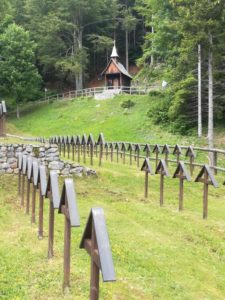 Percorso: Il cimitero si raggiunge in macchina da Caldonazzo o da Lavarone raggiungendo la frazione Bertoldi, lasciando poi la strada principale e proseguendo ancora per circa mezzo chilometro fino alla frazione Slaghenaufi. Si consiglia di lasciare l’automobile nei pressi del piccolo parcheggio frazionale e di proseguire a piedi, seguendo la ripida stradina lastricata per circa 500 metri.