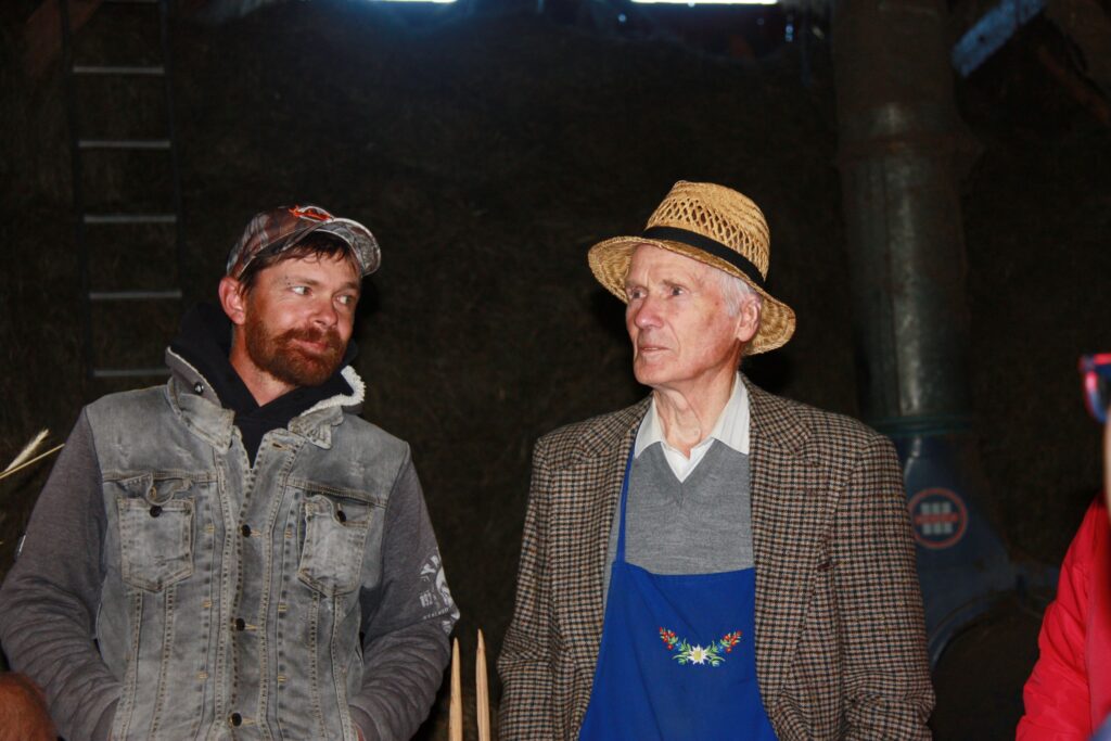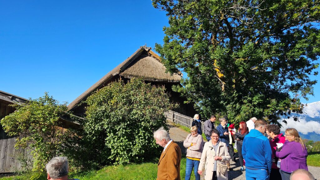 Während der Besichtigungen gewährten die Eigentümer Markus Pircher (Spitzegg), Thomas Alber (Gfrar) und Paul Lun (Duregg) authentische Einblicke in die Geschichte und Besonderheiten ihrer Höfe. Besonders eindrucksvoll waren die Innenansichten der Dachkonstruktionen: Das hölzerne Tragwerk zeigt die gebündelten Roggenhalme (Schaben), die mit Weidenruten an den Dachlatten befestigt werden.