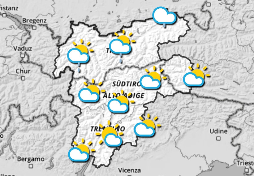 Temperature previste: Innsbruck 5° /12°; Bolzano 7° / 17°; Trento 8° / 18°