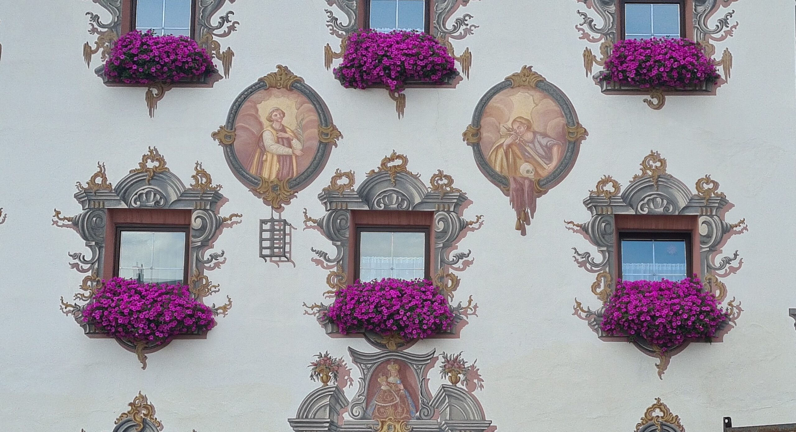 Gli stupendi fiori alle finestre sembrano offerte al Cielo, messe lì apposta a per  chiedere la Sua protezione, ma anche per ringraziare dei magnifici doni del Creatore.