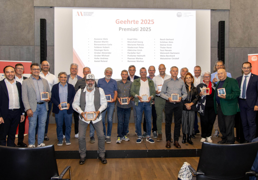 Für den 30jährigen Besitz des Meisterbriefes geehrt wurden Alois Ausserer, Martin Biasion, Carlo Bonaventura, Hubert Felderer, Karin Fössinger, Alexander Gruber, Michael Gruber, Andreas Hofer, Georg Marschall, Patrizia Merlante, Erich Obkircher, Helmuth Profanter, Markus Psenner, Gerhard Resch, Alois Schötzer, Horst Thaler, Renato Tozzi, Hartmann Weinreich und Christof Weissteiner.