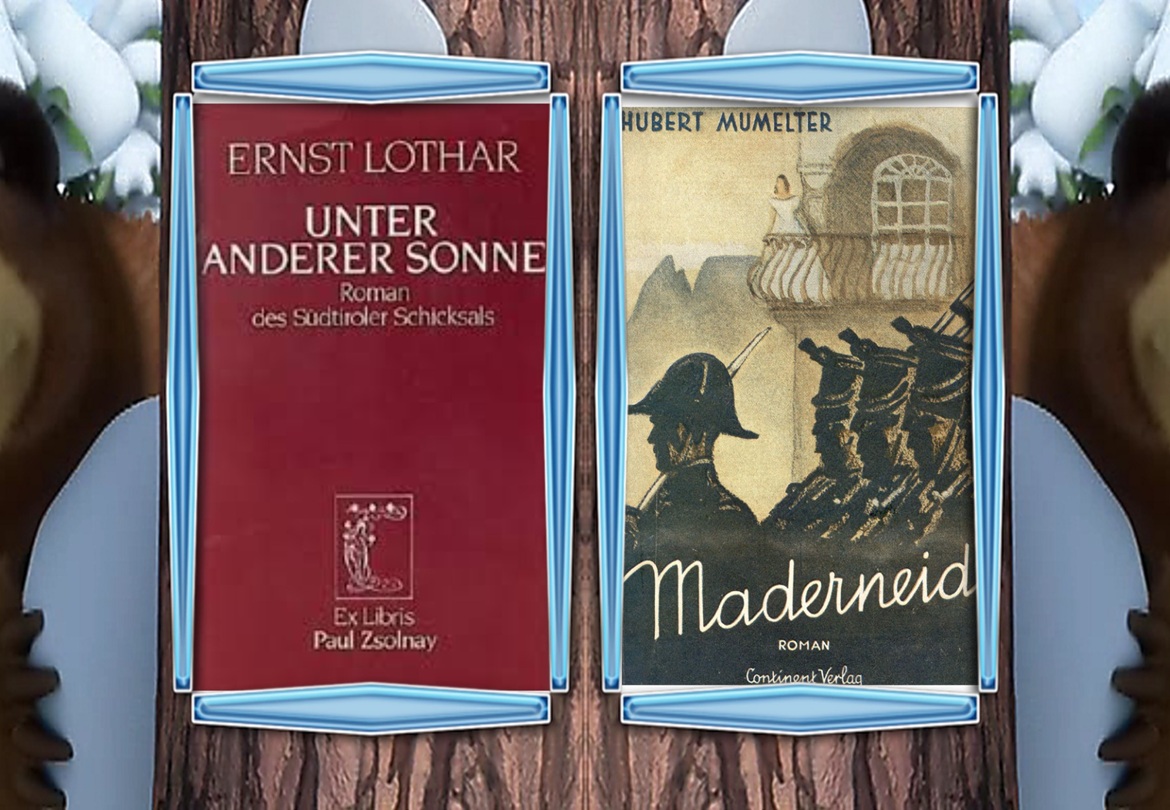 Il primo esempio è costituito dal “romanzo del destino sudtirolese” di Ernst Lothar Unter anderer Sonne, pubblicato in inglese con il titolo Beneath another Sun già nel 1942 (trad. it.: Sotto un sole diverso, 2016), in cui viene descritto il destino della famiglia Mumelter, di Bozen, trasferita forzosamente nella città di Pilsen nel 1939, ancor prima delle Opzioni. Le numerose imprecisioni storiche presenti nel romanzo possono, in parte, essere giustificate dal fatto che l’autore lo scrisse mentre si trovava negli Stati Uniti, senza accesso diretto a fonti affidabili. Ciò che rappresenta il vero nodo problematico del libro, tuttavia, è il suo significato simbolico o “indiretto”: attraverso il racconto della sorte di una famiglia deportata, viene trasmessa un’immagine profondamente falsata delle Opzioni, secondo cui i sudtirolesi che lasciarono la loro terra sarebbero stati vittime di una deportazione forzata.