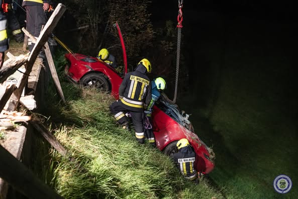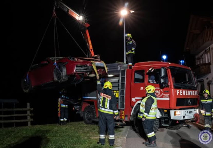 Am Montagabend ist auf der Landesstraße bei „Alpenreid“ in St. Pankraz ein Auto von der Fahrbahn abgekommen. Es stürzte rund 100 Meter über eine Böschung.