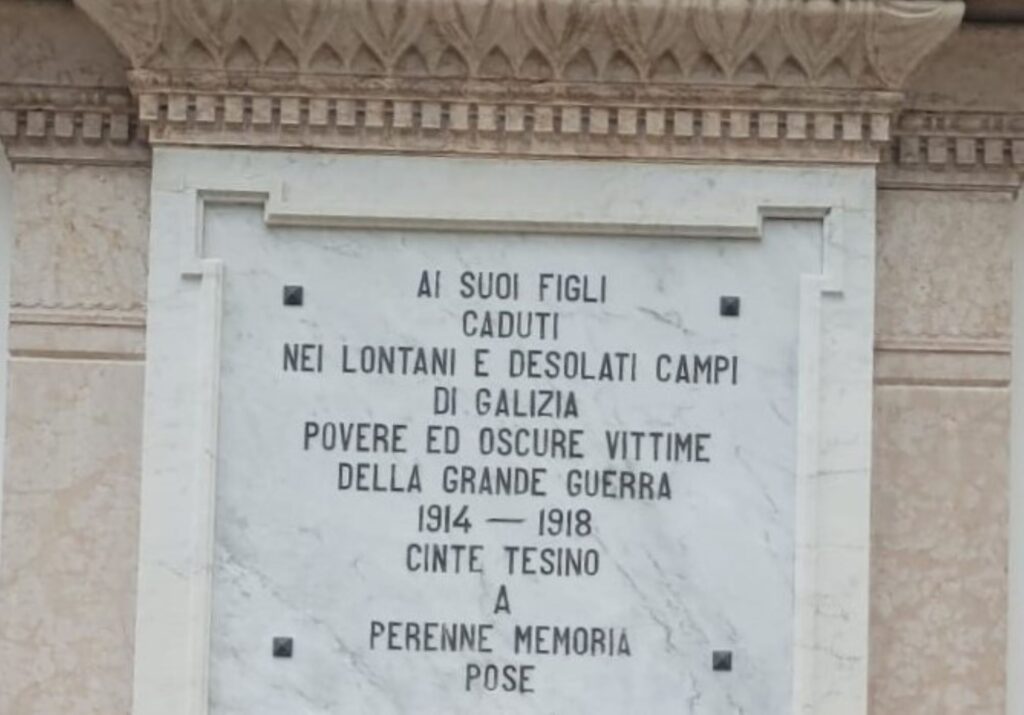Per la rubrica „Briciole di Memoria“, stiamo presentando alcuni di questi monumenti, molti dei quali – ancora ai giorni nostri – non sono stati contestualizzati. Speriamo che questa nostra serie di articoli serva in qualche modo a sollecitare l’apposizione di un testo (una targa, un totem, un QR, un qualsiasi cosa…) che spieghi ad ignari visitatori (ce ne sono tanti, più vicino di quanto si possa pensare) la realtà dei fatti ed il contesto storico in cui nacquero queste epigrafi. Sarebbe un atto dovuto, una piccola riparazione della memoria „dannata“, dopo più di un secolo di oblio.