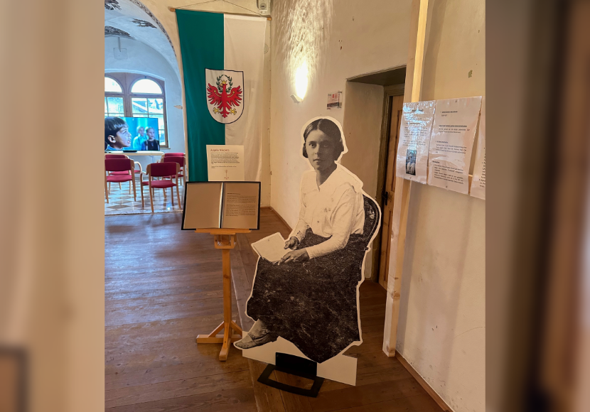 • La sagoma di Angela Nikoletti nella mostra che il Südtiroler Schützenbund ha dedicato alle Scuole Clandestine
