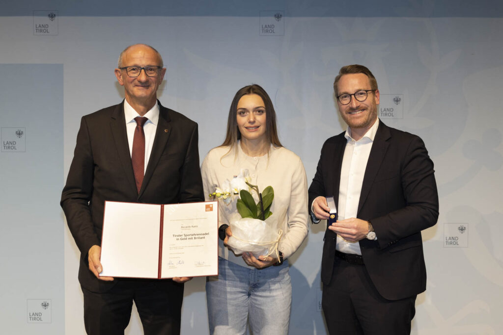 Die Tiroler Sportehrennadel in Gold mit Brillant ist die höchste Auszeichnung, die das Land Tirol für sportliche Leistungen vergibt. Sie wird an Athleten verliehen, die in einer anerkannten Sportart bei Olympischen Spielen, Welt- oder Europameisterschaften Spitzenplatzierungen erreichen konnten. In diesem Jahr wurden neun herausragende Tiroler Sportler geehrt, darunter Riccarda Ruetz, die als Naturbahnrodlerin mit Silbermedaillen bei der Europa- und Weltmeisterschaft sowie einem zweiten Platz im Gesamtweltcup beeindruckte, Juri Gatt, der 2024 gemeinsam mit seinem Partner im Doppelsitzerrodeln den Weltmeistertitel errang, und Riccardo Schöpf, der mit konstant starken Ergebnissen im alpinen Skisport auf sich aufmerksam machte.