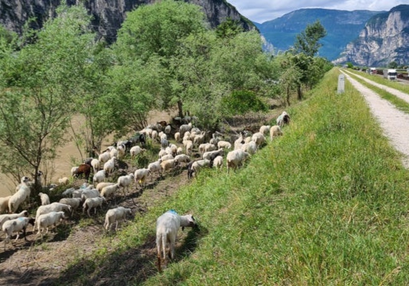 Unterstützung erhält die Wildbachverbauung erneut von einer Schafherde: Rund 160 Tiere beweiden derzeit die Böschungen zwischen Auer und Salurn und werden bis zum Winter nach Lana ziehen. Begleitet von einer Hirtin, einem Hirten und mehreren Hunden leisten die Tiere als „lebende Rasenmäher“ einen wichtigen Beitrag zur Uferpflege.