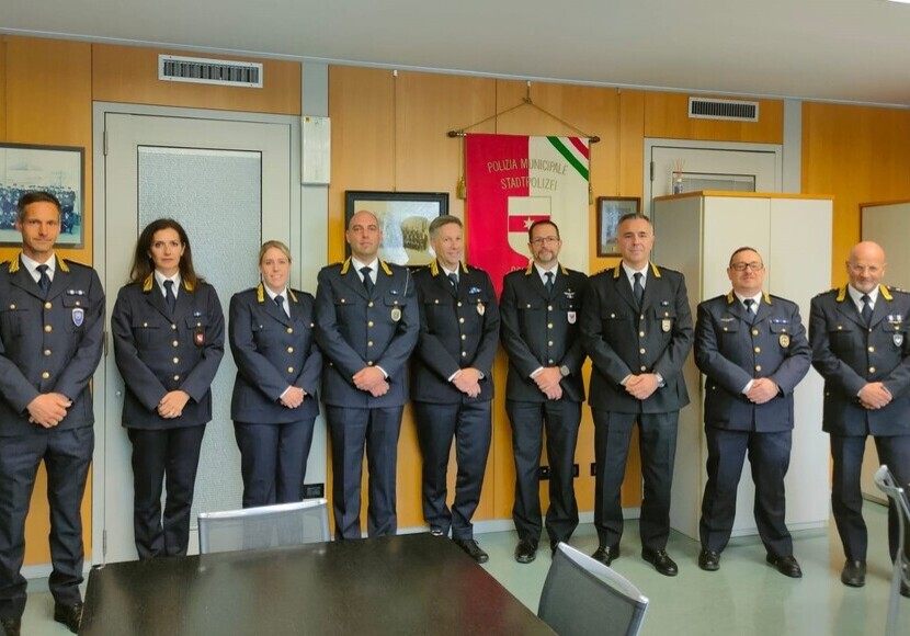 Die Südtiroler Vereinigung der Ortspolizei verschickte heute eine Pressemitteilung zu einem völlig anderen Thema. Das beiliegende Gruppenfoto der Kommandanten wäre eigentlich unspektakulär – wäre da nicht das Banner im Hintergrund der Bozner Stadtpolizei: mit klar ersichtlicher Trikolore.
