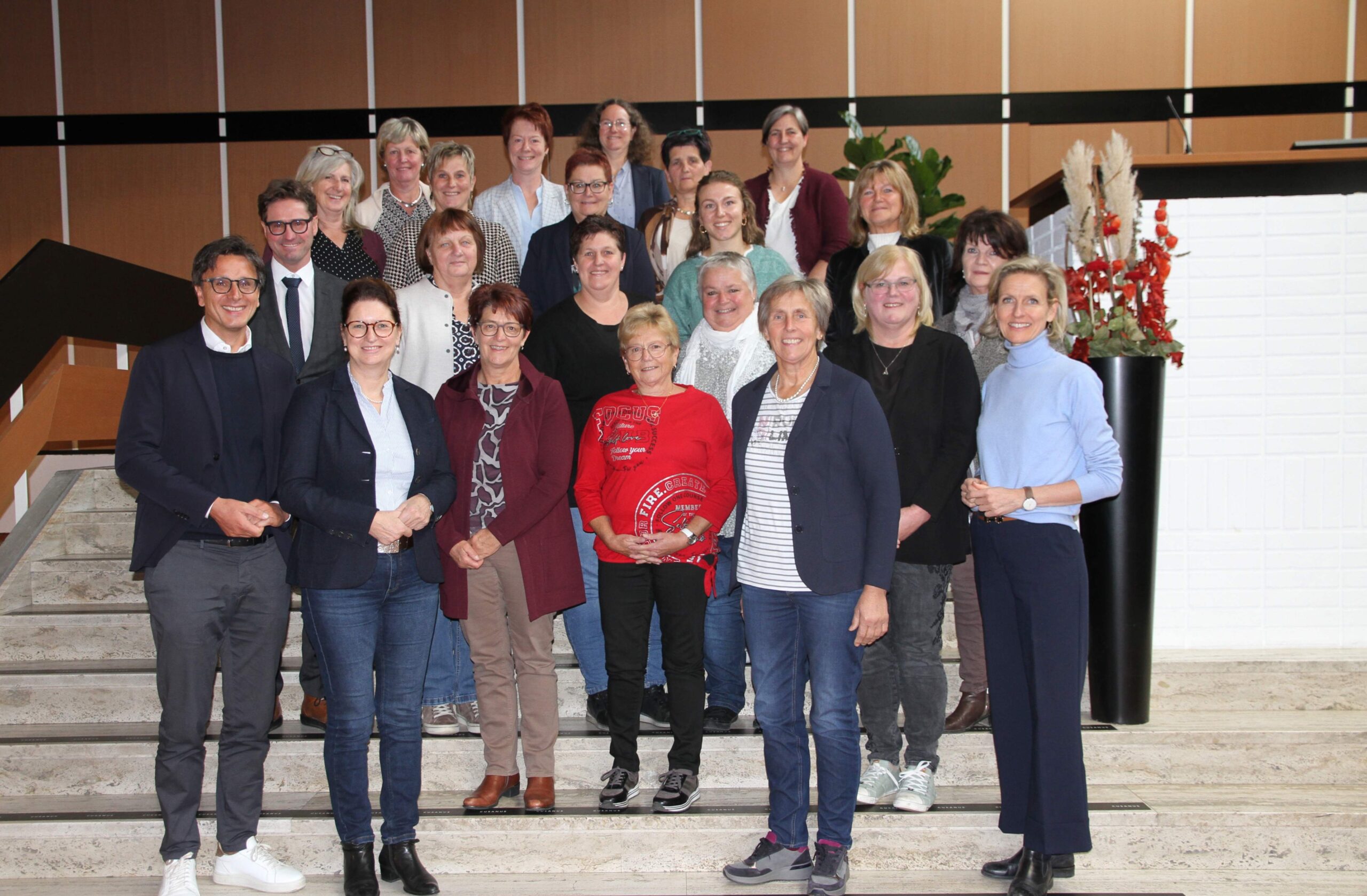 Immagine 1© Le contadine del Land Tirol, della Baviera e del Sudtirol insieme ai relatori Christian Hoffmann (EURAC), Bettina Schmid (HGV) e Joachim Messner (IDM).