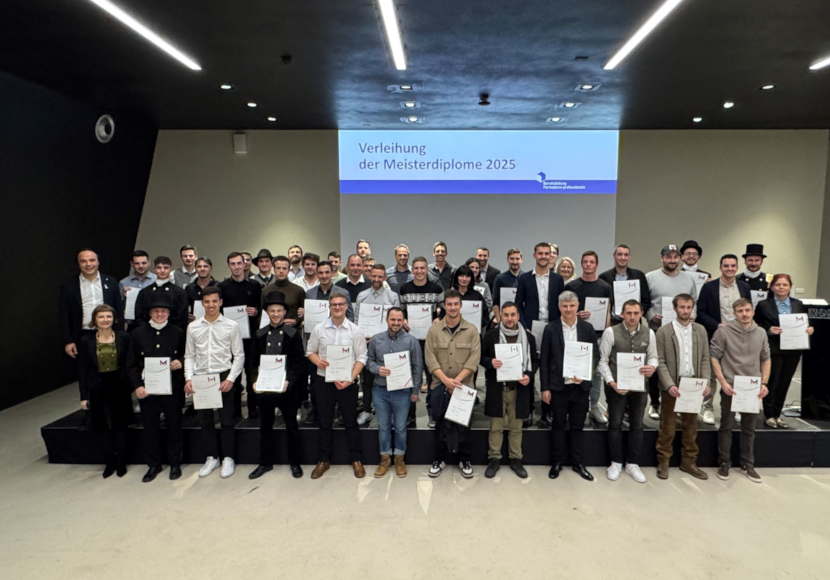 „Das Meisterdiplom ist ein Gütesiegel für fachliche Qualifikation und Unternehmergeist“, betonte Landesrat Philipp Achammer in seiner Festrede bei der Diplomverleihung am gestrigen Dienstag, den 25. November. Er freue sich, dass das hohe Niveau des Südtiroler Meistertitels 2025 auch vom Arbeitsministerium anerkannt worden ist: Das Meisterdiplom wurde dem Niveau sechs des Europäischen Qualifikationsrahmens zugeordnet und entspricht somit derselben Stufe wie der akademische Bachelor. Die Direktorin des Landeamtes für Lehrlings- und Meisterausbildung Cäcilia Baumgartner wies darauf hin, dass die Themen Digitalisierung und Innovation in jeder Meisterausbildung verankert werden: „Dabei kommt uns zugute, dass wir mit der Meisterschule im NOI Techpark Teil von Südtirols Innovationsviertel sind.“ So erhielten etwa die Tischler vor Ort einen Einblick in den 3D-Druck, oder die Maurer lernten mit dem Fraunhofer-Institut die Welt des Building Information Modeling – BIM kennen.