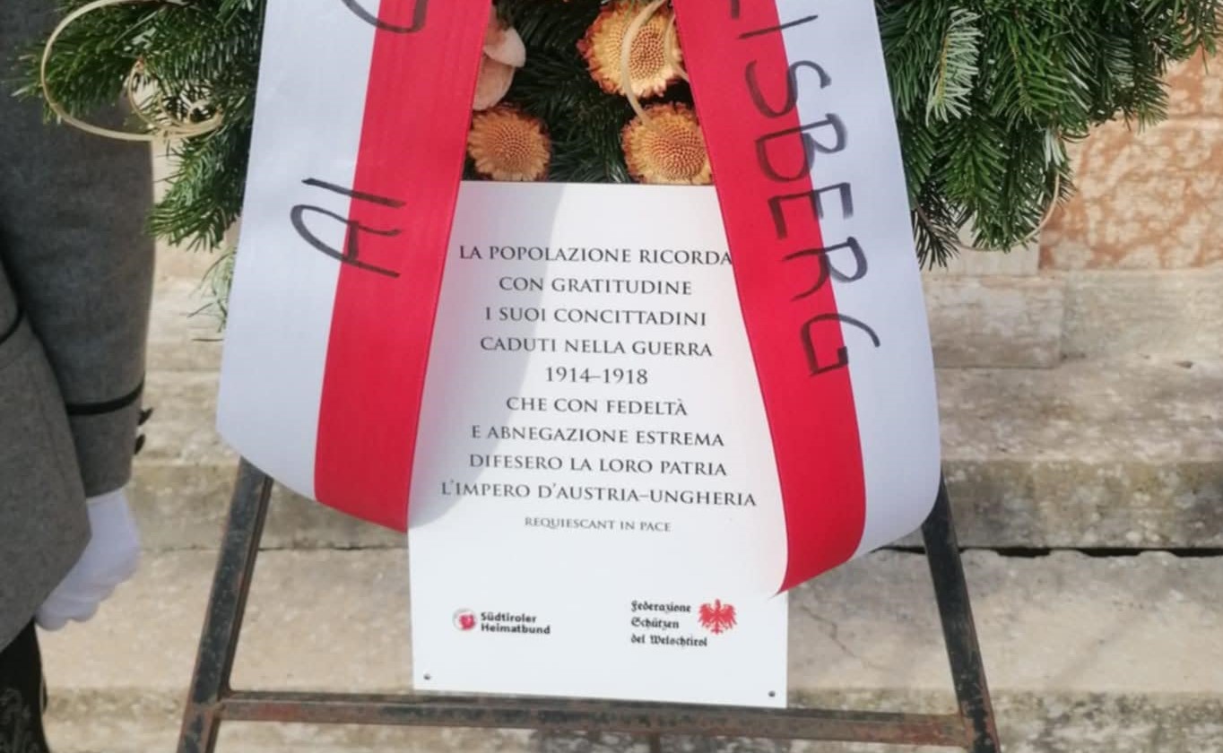 Abbiamo scritto anche dell’iniziativa congiunta della Federazione Schützen del Welschtirol e del Südtiroler Heimatbund, che insieme hanno realizzato alcune targhe di contestualizzazione, da porre ai piedi dei monumenti, insieme alla tradizionale corona di rami d’abete, in occasione delle cerimonie in ricordo appunto dei Caduti, quelle che solitamente si tengono tra ottobre e novembre (qui il link all’articolo 25 TARGHE PER RACCONTARE LA VERA STORIA)
