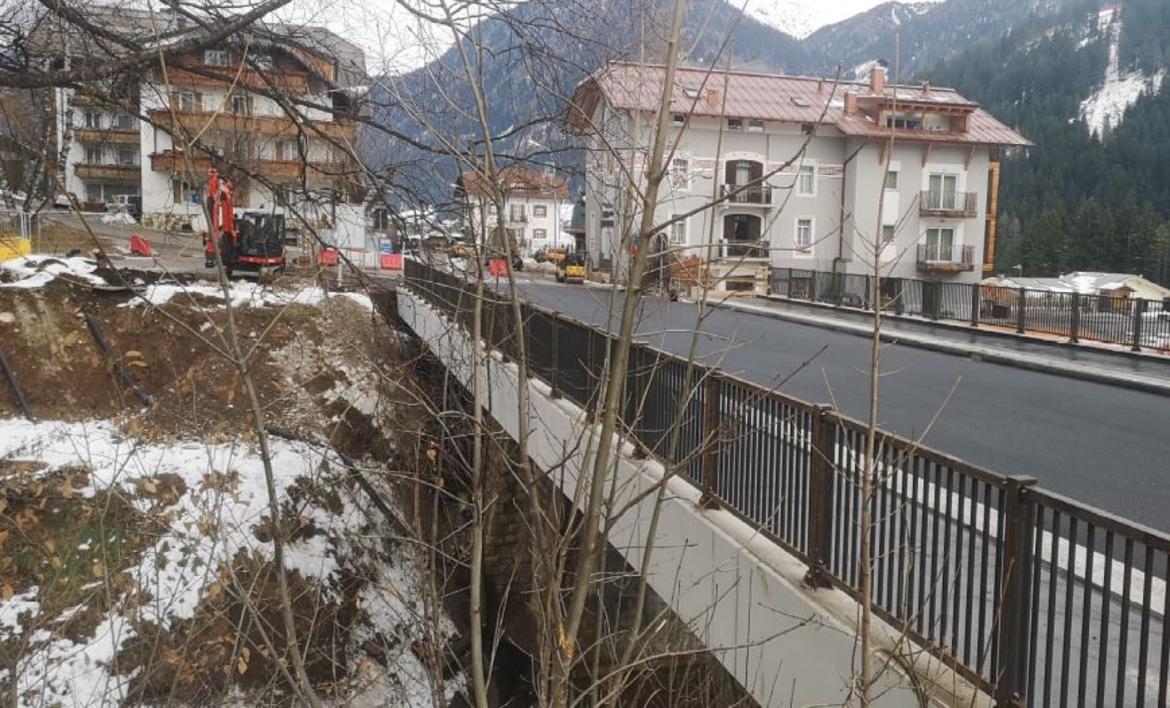 L’intervento di ristrutturazione è iniziato il giugno scorso e prevedeva il risanamento strutturale e l’adeguamento funzionale del ponte esistente, realizzato nel 1956. I lavori hanno comportato la deviazione del traffico all’interno dell’abitato di Vigo di Fassa (Sèn Jan).