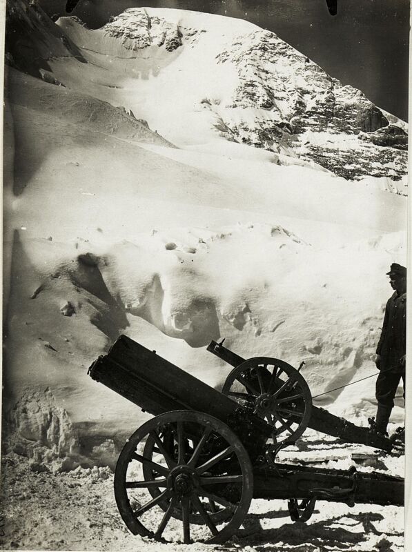 • Standpunkt Dodici-Grat: Batteriestellung Punta Penia-Hang. di K.u.k. Kriegspressequartier, Lichtbildstelle - Wien - Austrian National Library, Austria - Public Domain.