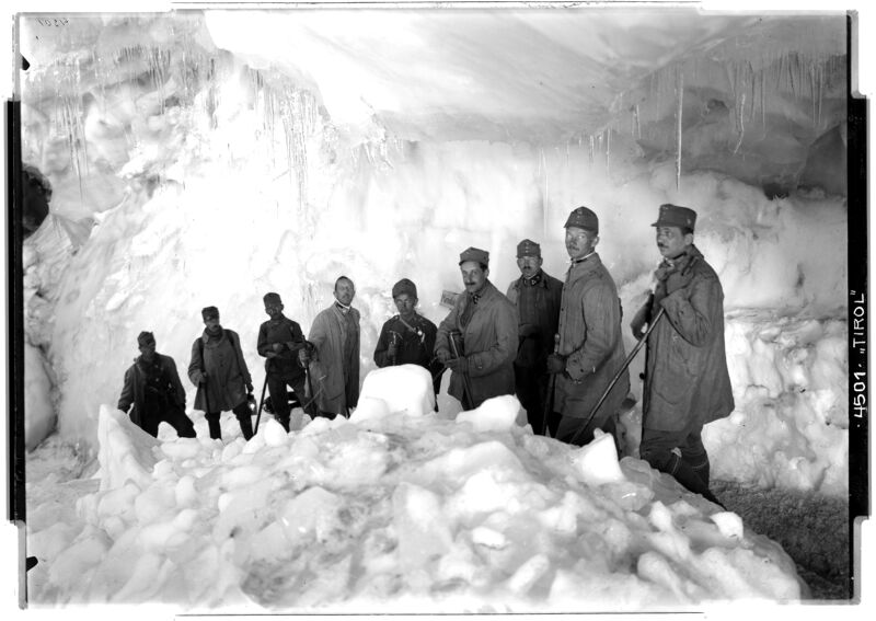 • Marmolata: Motiv aus dem "32er" Stollen. di K.u.k. Kriegspressequartier, Lichtbildstelle - Wien - Austrian National Library, Austria - Public Domain.
