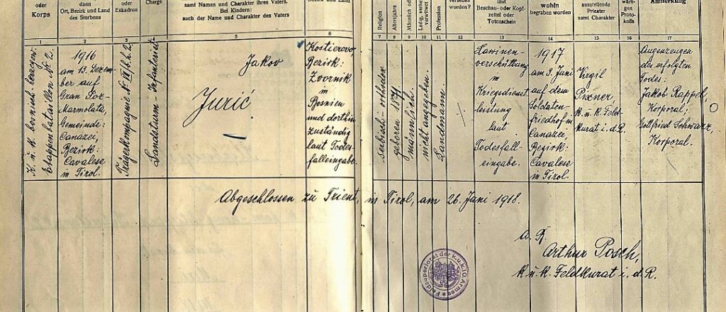 • Dagli Sterberegister dei Feldkurate - Archivio Manuela Sartori da CrossborderArchives