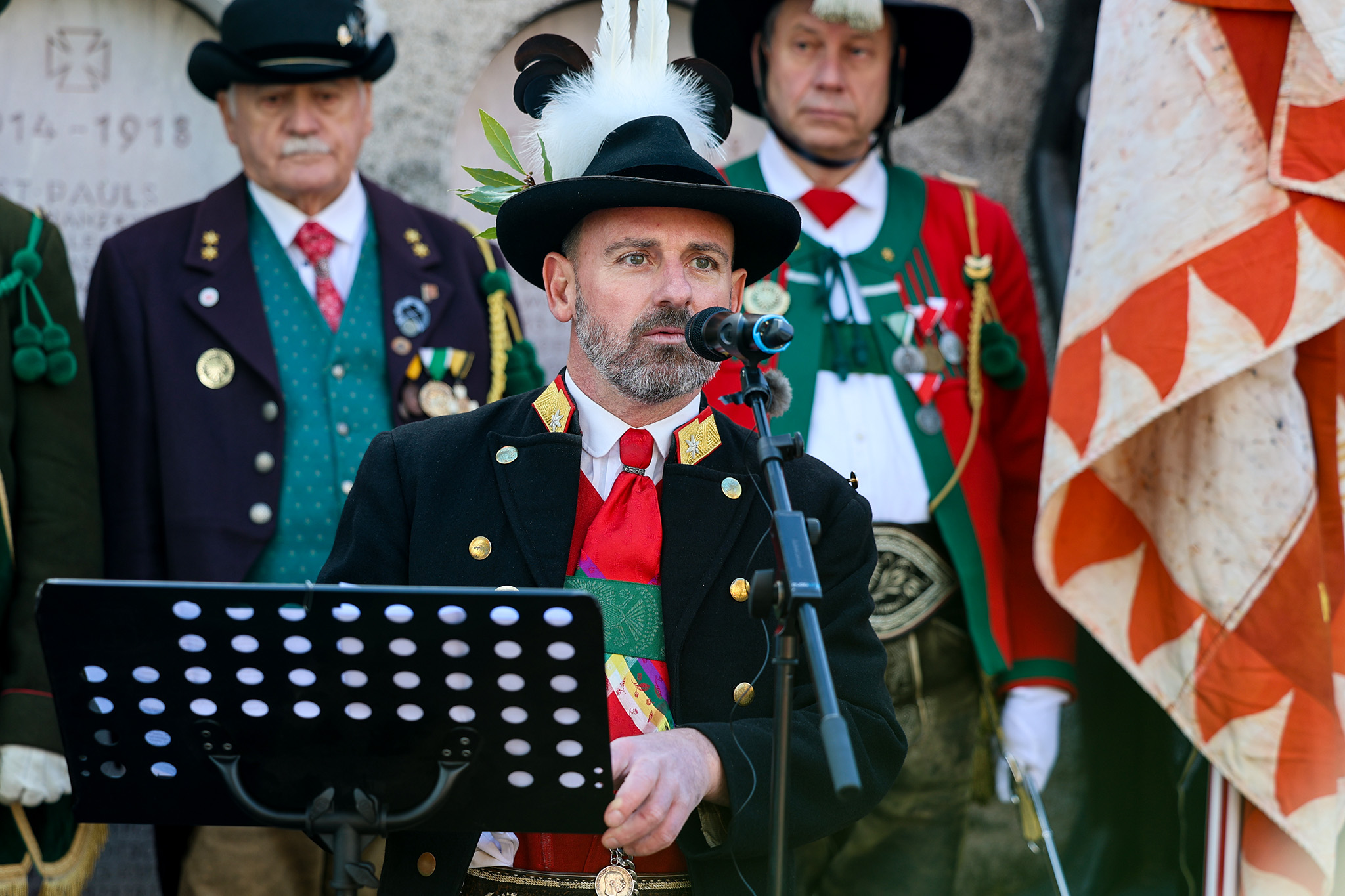 In conclusione, desidero ringraziare tutti voi che siete convenuti qui oggi: gli Schützen da vicino e da lontano, le delegazioni e gli ospiti d’onore, padre Reinald Romaner per la celebrazione della Santa Messa, la Schützenkompanie “Sepp Kerschbaumer” Eppan per l’organizzazione, la Musikkapelle St. Pauls per il solenne accompagnamento, e tutti coloro che hanno nel cuore un ricordo sincero.