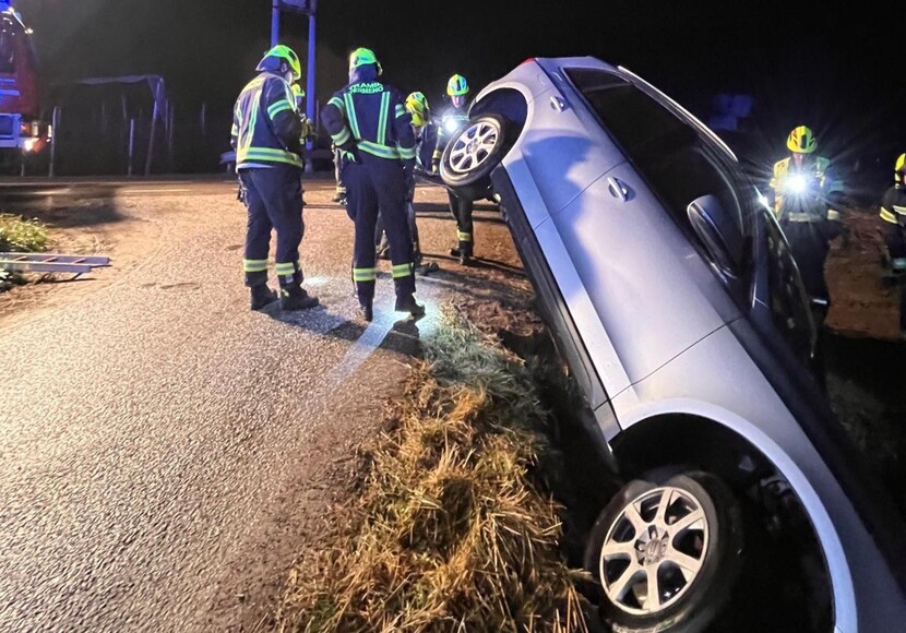 Auto rutscht bei Regen in Straßengraben – Fahrerin eingeschlossen