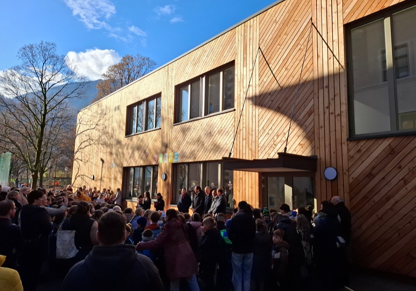 Am Nachmittag nutzten zahlreiche Bürger die Gelegenheit, den neuen Zubau zu besichtigen. Das Gebäude wurde in moderner Holz-Fertigbauweise errichtet und als 0-Energie-Passivgebäude konzipiert. Zur nachhaltigen Ausstattung gehören unter anderem eine Photovoltaikanlage, eine Raumluftüberwachung sowie eine Luft-Wärmepumpe.