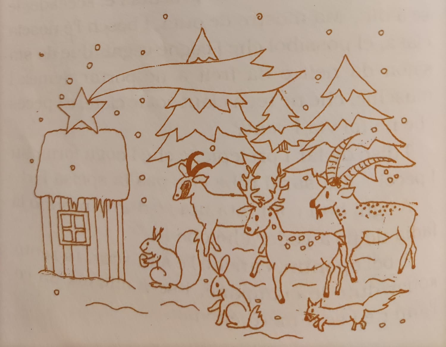 Tanto tempo fa gli animali del bosco decisero di voler vedere il presepio allestito nella chiesa del paese. Per la verità, ci pensavano già da qualche anno, ma per diverse ragioni non si erano mai trovati d’accordo. Questa volta però vi era la volontà di vederlo veramente.